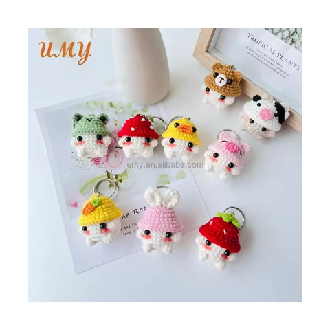 Custom Cadeau Sleutelhanger Plushie Gebreide Geweven Gehaakte Amigurumi Kunst Pop Dier Mini Kleine Pluche Zacht Speelgoed Champignons Sleutelhanger Ring