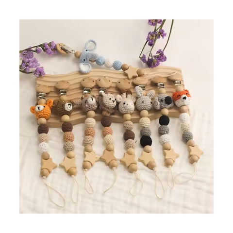 Anelli da dentizione Unisex in legno organico giocattoli in legno di faggio Set regalo per bambini Amigurumis massaggiagengive all'uncinetto
